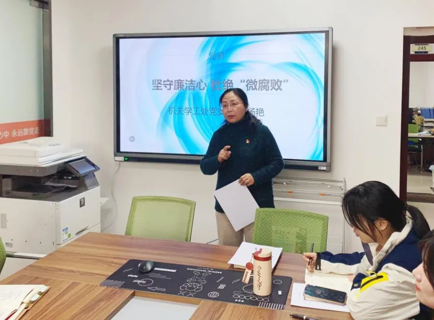 12月26日上午,机关学工处党支部在党员活动室244开展支部主题党日活动,党支部书记杨艳同志主持。