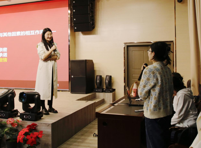 熊婕老师首先以一个“自我介绍”的热身游戏为这次讲座拉开序幕,以此引开自我认知这一主题。她表示“最好的礼物是自己”,女性应该给自己更充分的接纳,并建立积极稳定的自我印象。