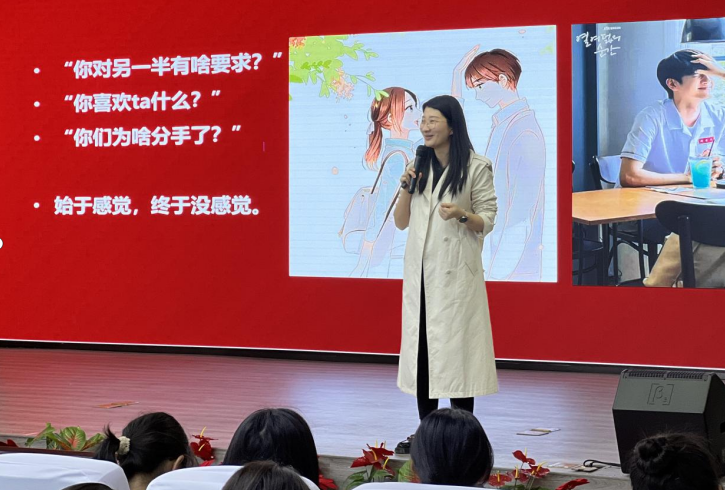 在这次讲座中,她以“爱情与性”为主题,结合她遇到的真实案例和专业知识,告诉女生们要从“生理、社会、心理”三个维度来认识自己,并给自己更多的关怀和肯定,这样我们才能以更好的心态去拥抱爱、享受爱。