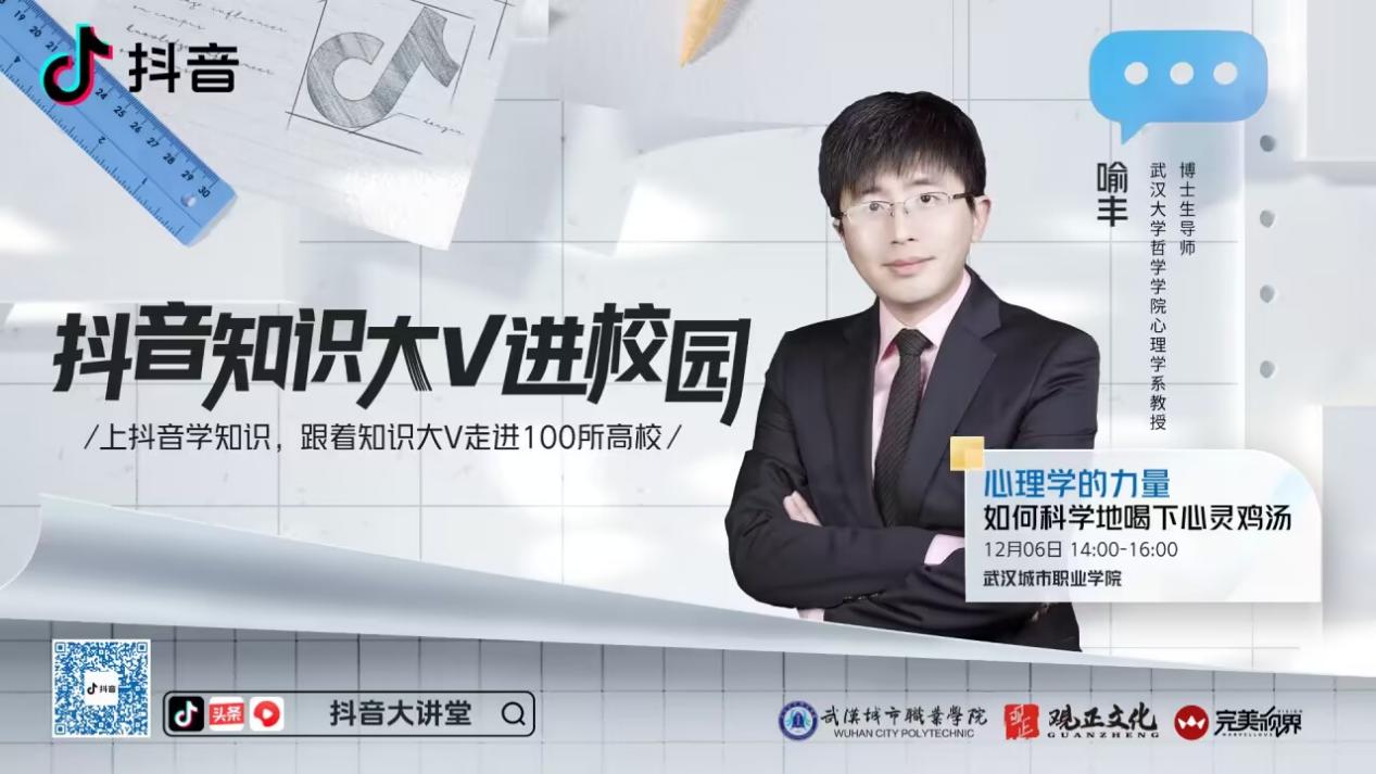 网上总是流传着“心灵鸡汤有毒”这句话,带有精神安慰作用的是心灵鸡汤,带有负能量的就是毒鸡汤。而我们要如何科学地喝下心灵鸡汤呢,本次我校在财经学院报告厅举办的抖音“知识大V进校园”活动将解答这个问题。