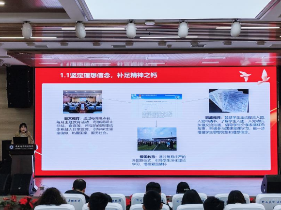 建筑工程学院辅导员熊伟老师以《立足岗位担使命铸魂育人谱新篇》为题,从思想教育、实践平台搭建、服务社会引导到教师自我提升等维度,强调思想引领与实践育人并重,注重学生全面发展与社会责任的培养,同时辅导员需持续提升专业能力以适应教育需求。