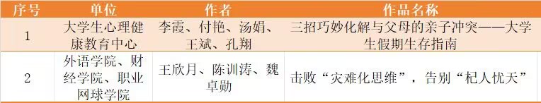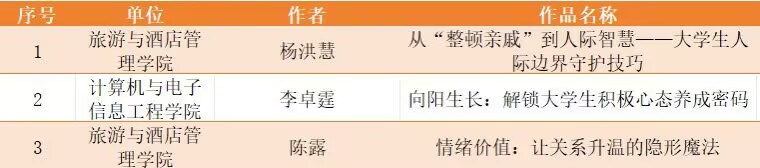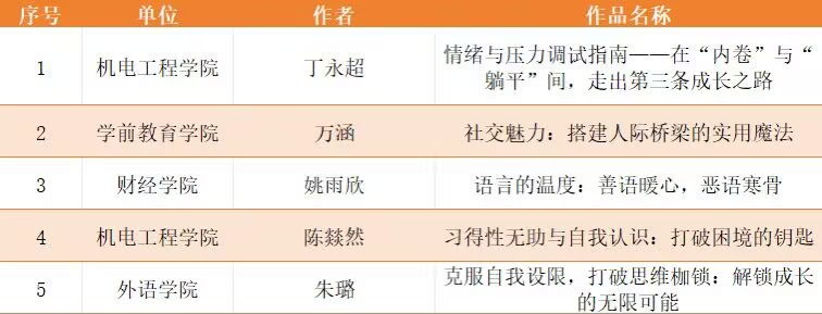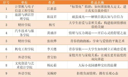 在此,向所有获奖人员表示热烈的祝贺!本次活动充分展现了我校师生对心理健康教育的创新思考与实践,为我校心理健康教育工作注入了新视角。学生工作部大学生心理健康教育中心将选择部分优秀作品进行视频录制,并择优推荐参加第二届全国高等学校心理健康教育微课征集展示活动。期待未来能涌现出更多优秀的心理健康教育微课,学校将继续深化心理健康教育创新实践,推动优质心理资源共建共享,助力学生全面发展。