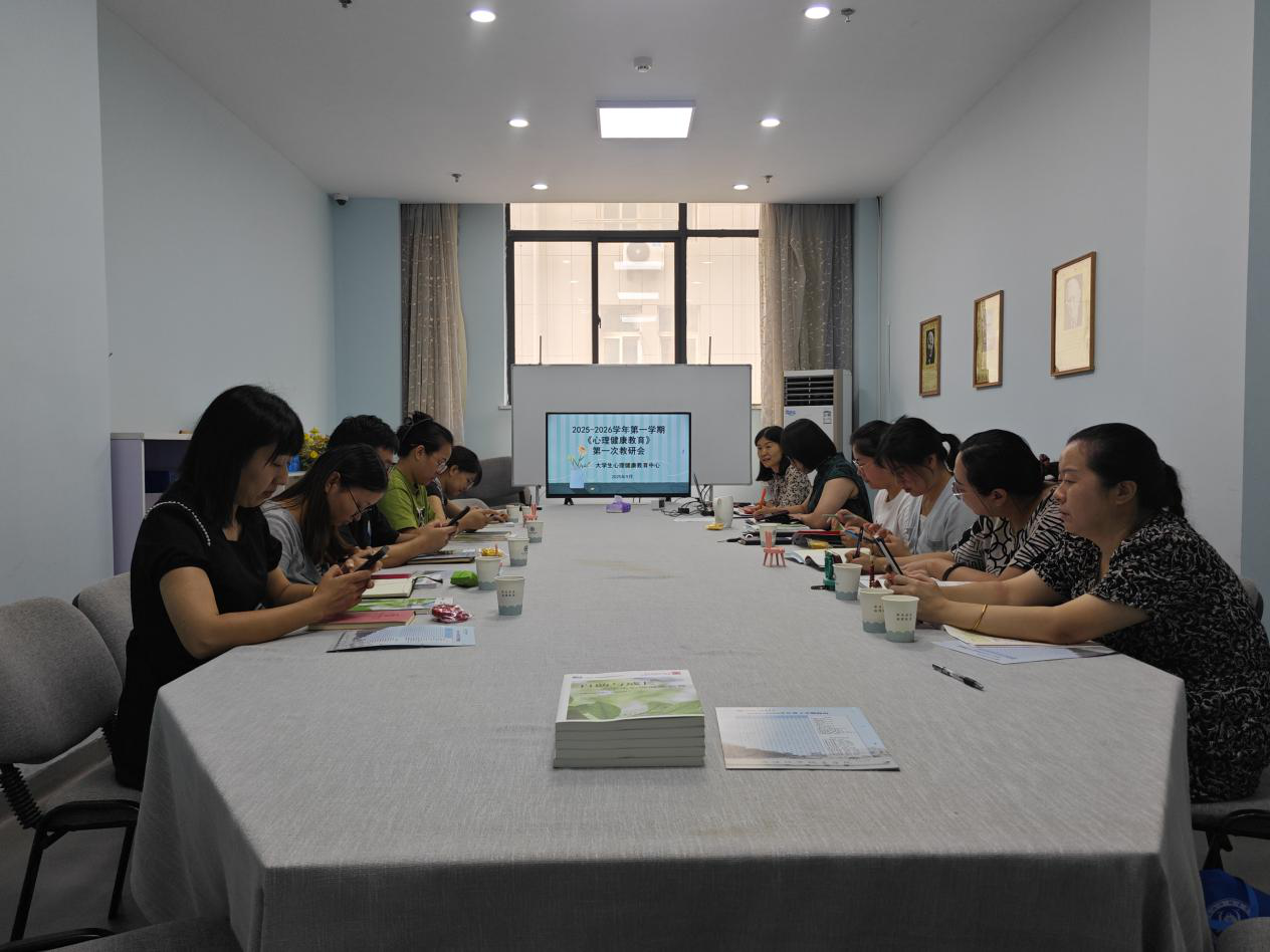 为落实学校阳光心灵守护工程,进一步提升心理健康教育课程教学质量,推动课程规范化建设,大学生心理健康教育中心于2025年9月9日上午在督导会议室组织召开了本学期第一次心理健康教育课程集体备课会。本次会议由大学生心理健康教育中心专职教师李霞主持,全体授课教师参与了本次教研活动。